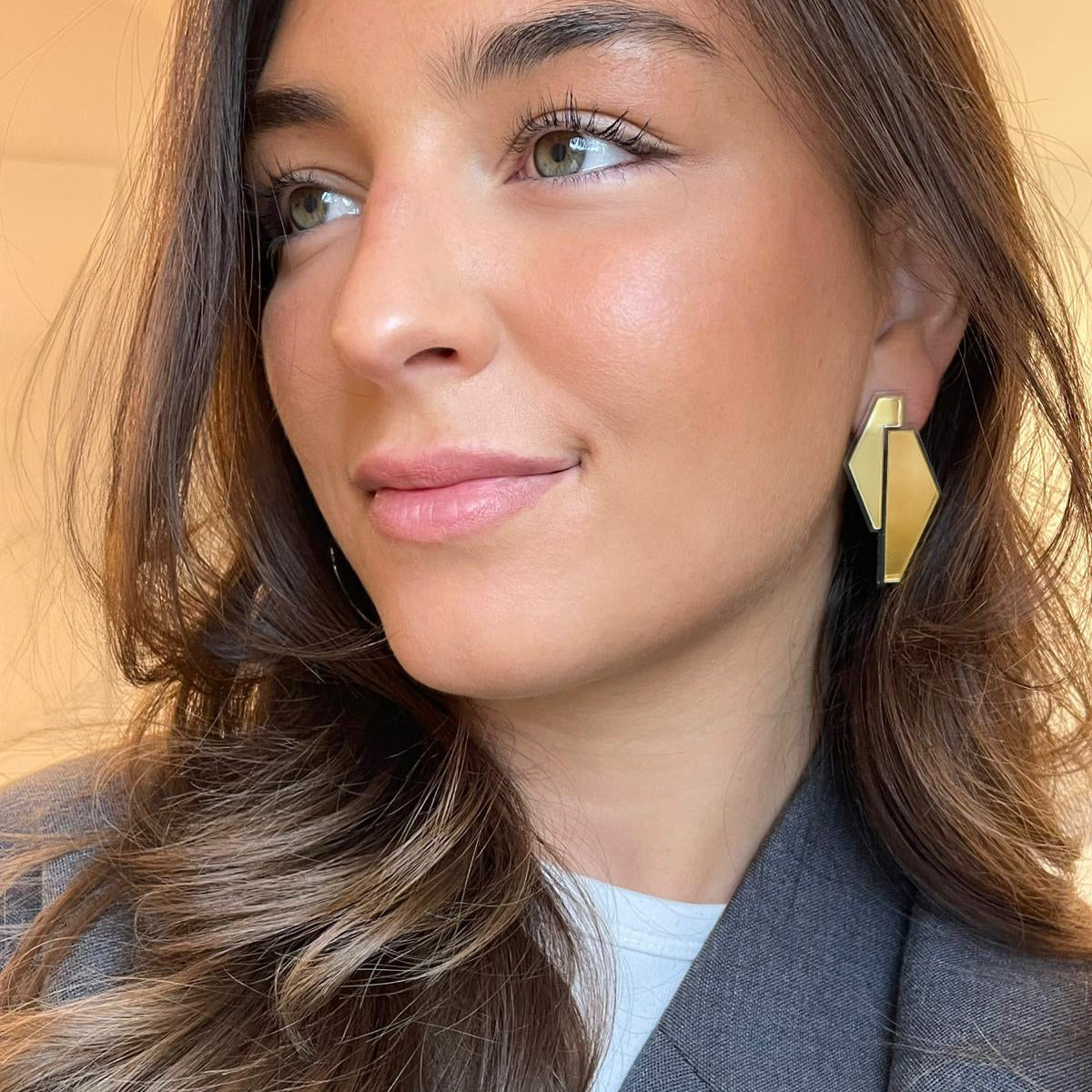 Chaque boucle associe la transparence lumineuse du plexiglass à l'éclat précieux d'un miroir doré ou argenté, créant un jeu subtil entre légèreté et sophistication.