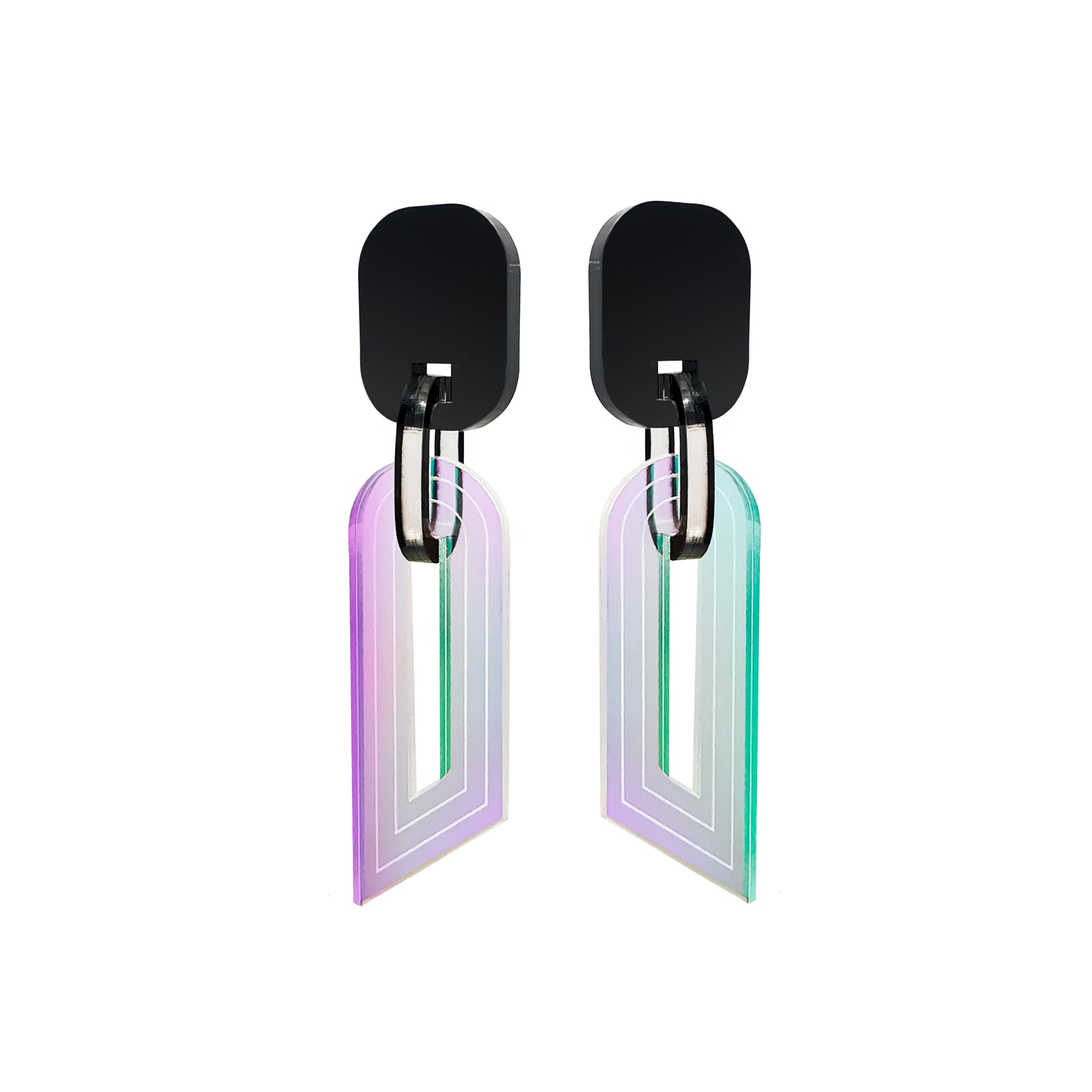 Ces pièces de créateurs en plexiglass colorés sont associées à d'autres éléments miroirs pour un côté chic et branché.